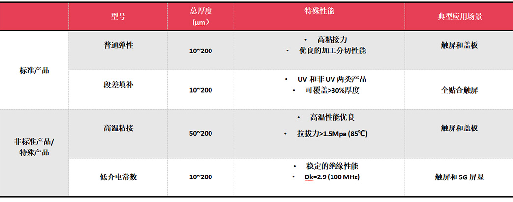 應(yīng)用闡述:OGS屏幕保護,顯示器面板等各種光學膜片以及觸摸屏 ITO 玻璃的粘接